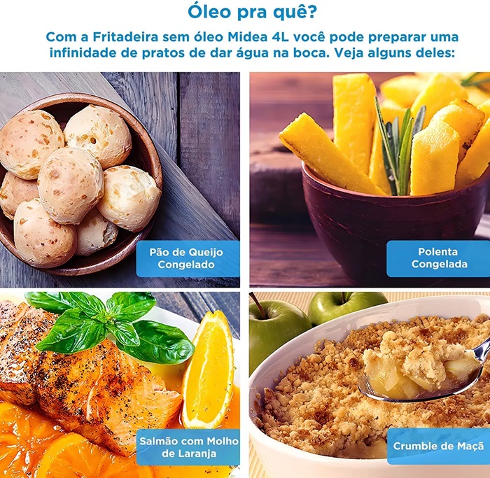 Com a AirFryer Midea 4L isso é possível, ela tem capacidade para 4 litros (ideal para famílias com 4 pessoas ou mais).