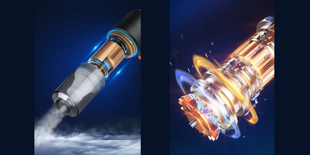 Não se deixe enganar pelo tamanho portátil. Este aspirador é equipado com tecnologia de ponta para garantir uma sucção eficiente: